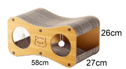 Diseño: Curvo tipo túnel, doble función (rascador + cucha)